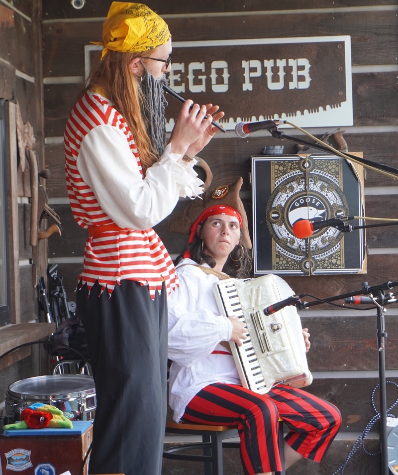 A crowd of a couple hundred, mostly locals but a few from all over the world, enjoyed a full day of live music, as well as pizza, beer, and nachos served by the pub. The crowd-pleasing favorite was "The High C's", a duo from western Washington playing penny whistle and accordion, interspersed with the worst nautical-themed jokes you've ever heard. The advertised headliners were the Carpathian Pacific Trio, a Klezmer band out of Portland. The other acts were all Montana locals coming out to entertain friends and family, including Euphonium Spaceship, aka Pom and Kathi Collins, who do a lot of the behind the scenes organizing for the festival.