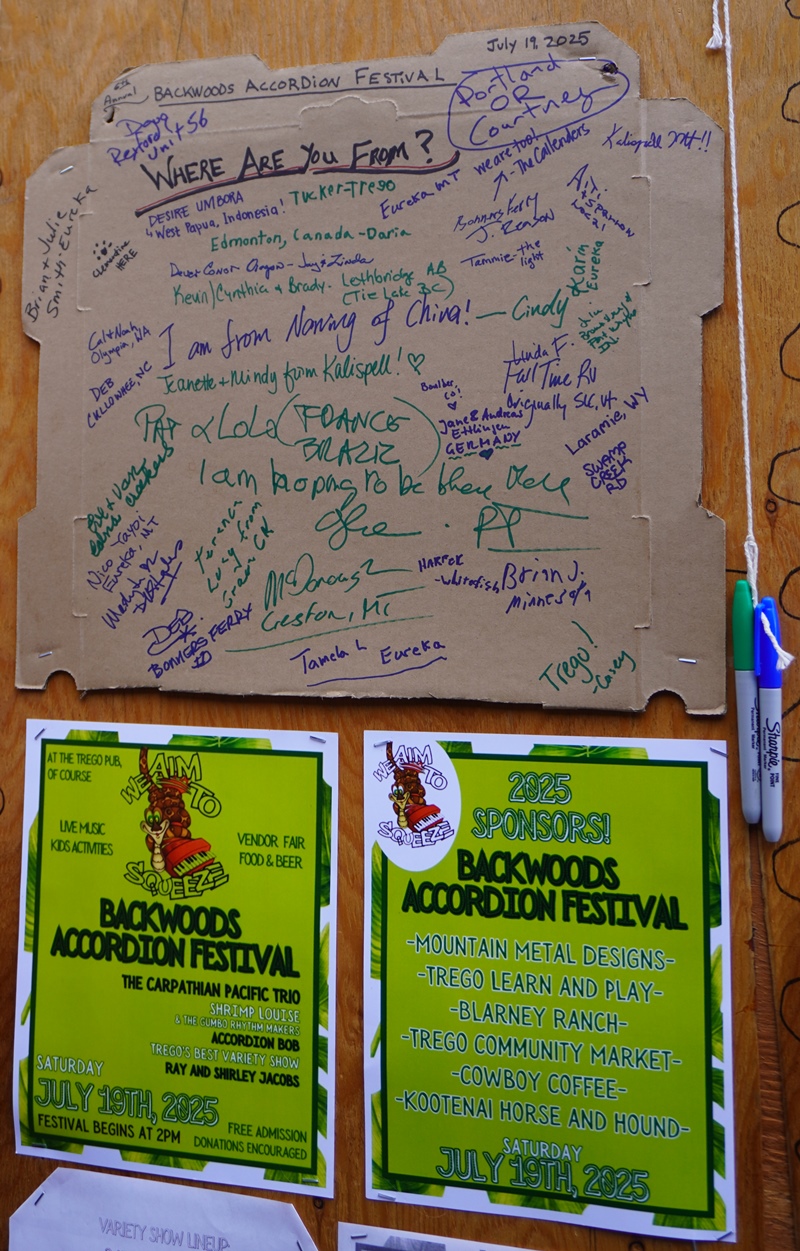 My local music festival, the Backwoods Accordion Festival happens the 3rd weekend of July each year at the Trego Pub and General Store, just up the road from my home town of Fortine. The view of the forest and mountains from the outdoor venue is amazing, and after miserably hot weather in 2023 and 2024, we finally had a comfortable day in the mid 70s this year.
