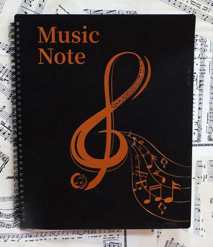 Spiral bound folder with 60 easy-access plastic sleeves to hold your sheet music