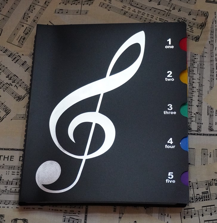 Large folder with 40 easy-access plastic sleeves to hold your sheet music