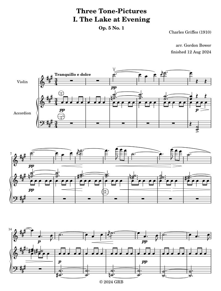 A classic American impressionist piano work, arranged for violin and accordion by Gordon Bower.