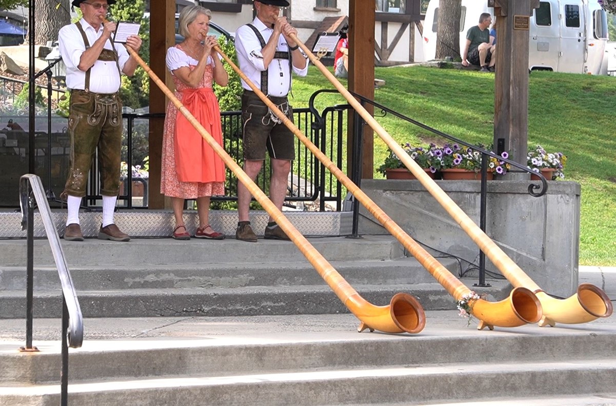 And, most fun of all for the casual attendees, there is free live music every afternoon, both indoors and out. This year I especially enjoyed having the Leavenworth alphorn club come out to the Gazebo and demonstrate their instrument for us. I hope in the future there might be some direct alphorn-accordion collaborations.
